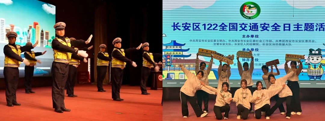 10时30分室内活动开启,长安大队民警演唱改编歌曲《交警修炼手册》,将交通安全知识融入欢快旋律,获师生掌声。长安消防救援大队展示破拆、急救等救援技能,普及事故发生时应如何根据现场情况进行应急自救;区检察院检察官结合案例解析交通违法法律后果;我校青春广场舞协会学生以活泼欢快的韵律操呈现文明交通理念。活动最后,交管大队警官通过多则事故警示视频普及了安全驾驶、文明驾驶的重要性。在互动问答环节,学生们踊跃参与,巩固了学习成果。