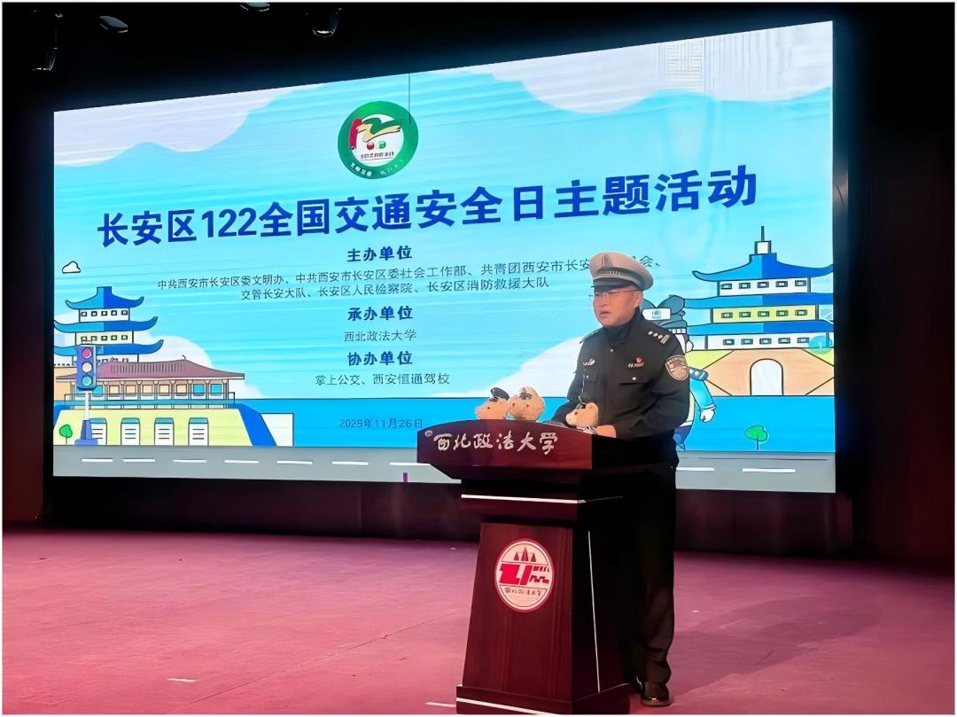 交管长安大队副大队长杨军在致辞中围绕 “文明交通 礼行天下” 主题,呼吁师生遵守交通法规,做到 “车让人 人守规”,摒弃骑行不戴盔、逆行等陋习,警惕步行乘车风险,争当交通安全宣传使者,将安全意识融入日常出行,共筑安全畅通交通环境。